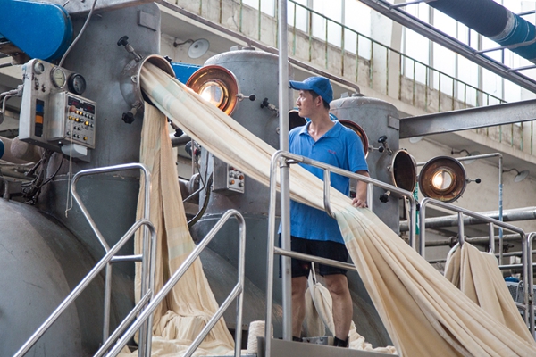 “皎皎河漢女,纖纖擢素手”,織機前接線的女工動作嫻熟、姿勢優美,那一刻的身形儼然是飛天的姿態。