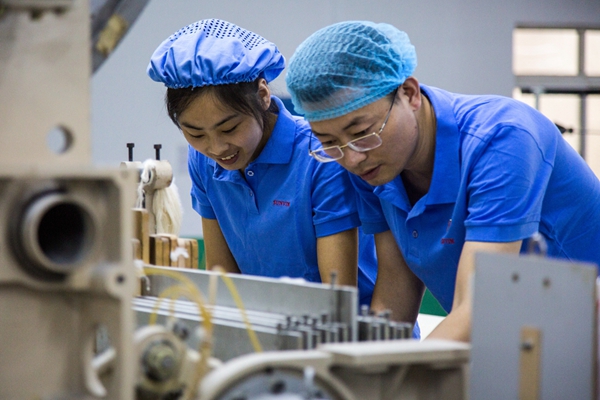 “唧唧復唧唧,木蘭當戶織”,如今的紡織工廠里巾幗和須眉同臺競技,姐妹,兄弟,搭檔,師徒,她們和他們一起撐起了一片美麗的天空。